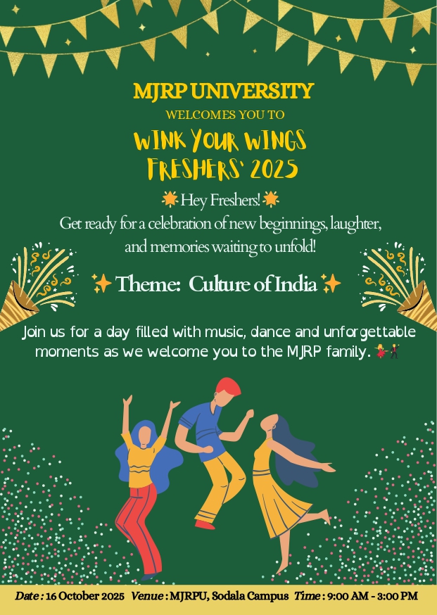 At MJRP University, we are rooted in timeless values and driven by a bold vision for the future. In every challenge, we find opportunity — to learn, to lead, and to grow together. Our campus is a space where tradition meets innovation, and where students are empowered not just to succeed in academics, but to thrive in life. We believe in nurturing minds that think freely, act ethically, and create fearlessly
